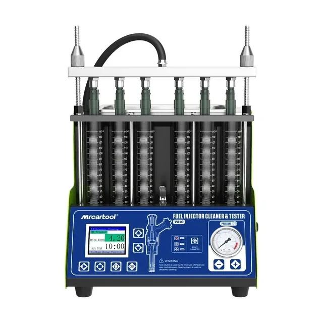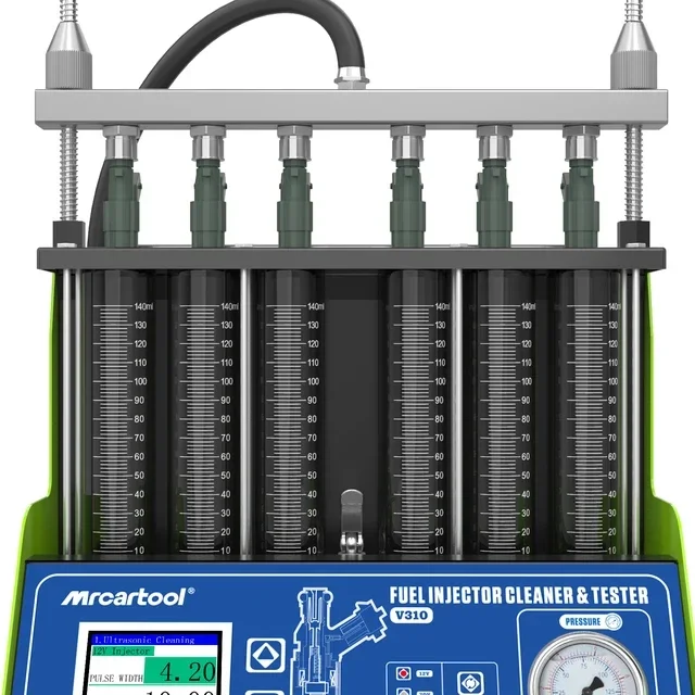 MRCARTOOL V310 kan 6 injectoren tegelijkertijd testen en reinigen voor een betere efficiëntie; het heeft ook beide regelkleppen voor het aftappen van reinigingsoplossingen en het terugwinnen van vloeistoffen testen. Zeer gemakkelijk en handig om mee om te gaan en geen zorgen over het verlaten van een puinhoop.