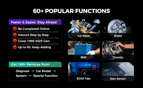 • 300+ geavanceerde speciale functies voor specifieke voertuigen, zoals eenvoudige service correctie/stationair toerental/injectiehoeveelheid compensatie/schrijf servicegeschiedenis/, etc.