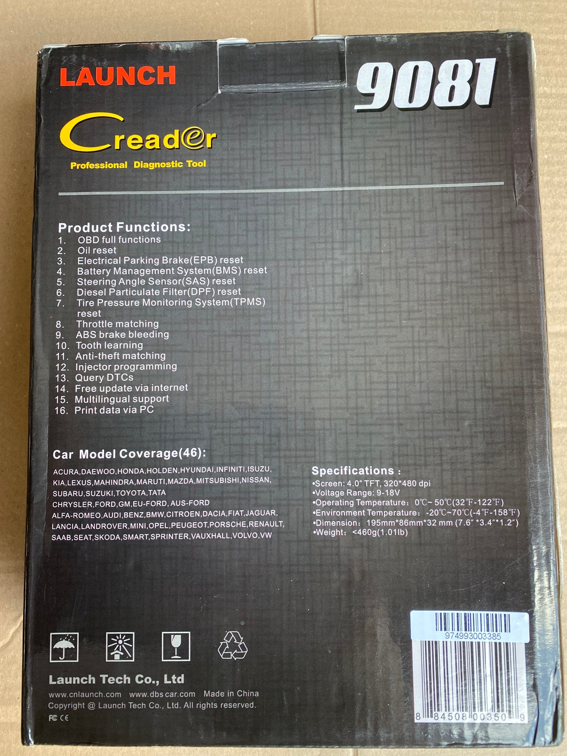 Original Launch CReader 9081 CR9081 Full System Scan Tool with 11 Reset Functions Support OBD/ ABS/ Oil/ EPB/ BMS/ SAS/ DPF